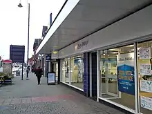 A Thomas Cook branch in Denton, Greater Manchester taken over by Hays Travel. Pictured in December 2019 the former branding is visible beneath the temporary Hays Travel signage.