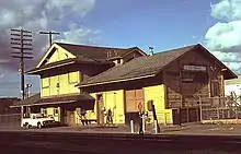 Transcontinental service was shifted from the CP to a northern route on the California Pacific Railroad in 1879. The Southern Pacific Railroad (SP) leased the CP in 1885 and constructed a two-story wood station of standard design at Hayward.[1] Long-distance service to the south was switched to the Coast Line around 1909, but local passenger service to Hayward continued until 1941.[3] Freight service continued on the line, and the station remained intact until it was destroyed by a 1982 fire.[1]