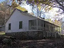 - Calhoun House, built by George Higdon and purchased by Granville Calhoun in 1928.[24] After 1944, park rangers used the Calhoun House as a bunkhouse, giving it the name "Hazel Creek Hilton." The house is located at the Hazel Creek trailhead, near Campsite 86.