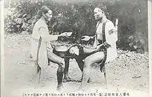 Historians have suggested that the practice related to Americans viewing the Japanese as lesser people, and in response to mutilation and torture of American war dead.[43] In Borneo, retaliation by natives against the Japanese was based on atrocities having been committed by the Imperial Japanese Army in that area. Following their ill treatment by the Japanese, the Dayak of Borneo formed a force to help the Allies. Australian and British special operatives of Z Special Unit developed some of the inland Dayak tribesmen into a thousand-strong headhunting army. This army of tribesmen killed or captured some 1,500 Japanese soldiers.[44]