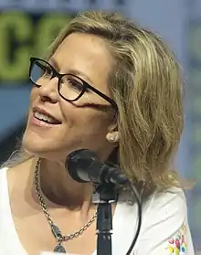 ![]() Heather Kadin speaking at the 2018 San Diego Comic-Con International. | |