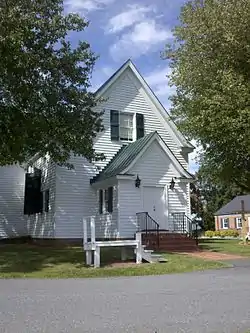 Hebron Lutheran Church is a historic Lutheran church located in the countryside northeast of Madison, Madison County, Virginia. The original section was built about 1740, with the south wing added about 1800. It is a one-story, T-shaped, frame building on a stone foundation. The original section measures 50 feet by 26 feet. The building was renovated in 1850 and, in 1885, the flat ceilings were adorned with decorative frescoes of rich Victorian patterns by Giuseppe Oddenino. The building was renovated again in 1961.[3]