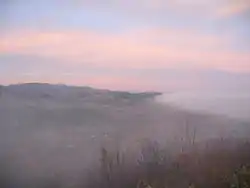 Early morning view from Heimburg Castle looking west over the village towards the Harz