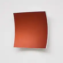 Michael Post characterizes this technique:«The method of anodizing allows the creation of colorfulness without the material substance of color becoming visible.« (in German: «Die Methode des Eloxierens gestattet die Herstellung von Farbigkeit, ohne dass die materielle Substanz der Farbe sichtbar wird.«)[6] Once again, Thiel focuses on the viewer's perceptions in these works: viewed from a distance, the concave or convex element of the work loses itself and the work appears like an ordinary square with normal edges. However, when you look from the side, the work begins to emerge from the wall and the curvature becomes overly clear. In addition, the lighting of the values has an influence on perception, the shadow cast by the respective work becomes part of the mystery picture of perception. Hans Zitko writes:«In this event, the objects gain the character of phantoms, which are able to change their form and structure under the glances of the subject«. (in German: «In diesem Geschehen gewinnen die Objekte verschiedentlich den Charakter von Phantomen, die ihre Form und Struktur unter den Blicken des Subjekts zu verändern vermögen.«)[7]