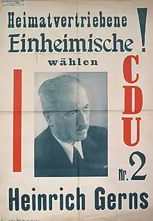 ![]() Heinrich Gerns on a campaign poster for the 1949 Bundestag elections | |