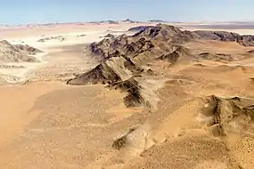 Several parts of the mountain range are covered with sand which is blown there by sandstorms. The average yearly rainfall in this area of the Namib amounts to just a few millimetres.[3][4]