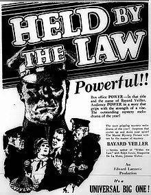 - ↑ "Universal Synopses: Held by the Law". Universal Weekly. New York City: Motion Picture Weekly Publishing Company. 26 (6): 38. September 17, 1927. Retrieved January 5, 2024.