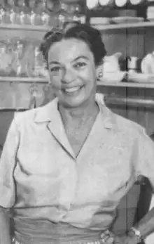 Helen Oakley Evans was born as a twin on November 16, 1904, in Brooklyn, New York, to Lucy Margaretta (née Walker) and Alfred Kinn Evans.[1][2][3] She had two younger brothers, John W. and Allen J. Evans,[4][5] and grew up in Brooklyn, New York. She studied at Connecticut College for Women and Hunter College,[6] before continuing her education at the Yale School of Fine Arts,[2] as an art major in 1924 and 1925.[5] Around 1926, Evans married Stephen Comstock, with whom she had a son, William,[7] and began running a catering business called "The Epicurean" with a friend. Comstock later opened the Brownstone House Restaurant, in New Haven, Connecticut.[6] After around a decade of marriage,[8] in which the couple also had a daughter, she met Phillip S. Brown, who was an uninvited guest at a dinner party Comstock hosted. The two had a whirl-wind courtship and within weeks, Phillip had convinced Comstock to move to California by way of Reno, Nevada. She left her two children with Stephen, married Brown in Nevada and then reunited with her children.[6][9]