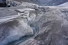 Helen Glacier is located east of the Continental Divide in the northern Wind River Range in the US state of Wyoming. The glacier is located in the Fitzpatrick Wilderness of Shoshone National Forest, and is among the largest grouping of glaciers in the American Rocky Mountains. Helen Glacier flows to the east from a cirque to the northeast of Mount Helen.[2]