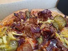 In June 2019, the fake meat of a burger pizza, made by Beyond Meat, met food standards but caused controversy as it was labelled as a "burger" pizza but contained vegan burger patties.[23]