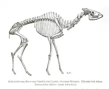 Helladotherium is an extinct genus of sivatherine giraffid from Europe, Africa, and Asia during the Miocene.[1] The most complete skeleton is that of a female, based on a comparison with an intact female Sivatherium giganteum skull.