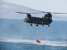 Chinook CH-47D of the Hellenic Army Aviation loading water during the Kalamos fire of August 2017