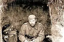 ![]() Machemer writing a letter from a dug-out in Russia (1941/42) | |