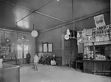 The middle part of the station building forms the core of the station, hosting the waiting halls, ticket sales, the kiosk hall and connection to the station tunnel. The eastern wing of the building used to host the offices of the railway administration. It also served as Helsinki's main post office, until it moved to the Postitalo building built in the 1930s. The head office of the VR Group moved to Pasila in 2018. The eastern wing was converted into a Scandic Hotels hotel, opened in 2021. Baggage storage spaces have been located in the underground floor of the western wing since the 1970s. The ground floor has hosted a café since the 2000s, and the top floor hosts offices and business spaces.[10]:15 The station hosts almost twenty kiosks and restaurants, visited by over 20 thousand people per day.[8]:147