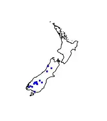 9. 1 2 3 Derraik, José G. B.; Barratt, Barbara I. P.; Sirvid, Phil; Macfarlane, Roderick P.; Patrick, Brian H.; Early, John; Eyles, Alan C.; Johns, Peter M.; Fraser, Patricia M.; Barker, Gary M.; Henderson, Rosa (2001). "Invertebrate survey of a modified native shrubland, Brookdale Covenant, Rock and Pillar Range, Otago, New Zealand". New Zealand Journal of Zoology. 28 (3): 273–290. doi:10.1080/03014223.2001.9518270. ISSN 0301-4223.