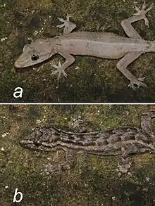 | Hemidactylus paivae from Serra do Pingano Rainforest National Park: (a) "cave-morph" from calcerous inselberg cave systems, (b) "forest-morph" from forest patch | |