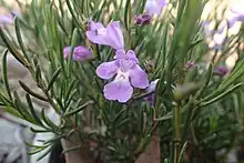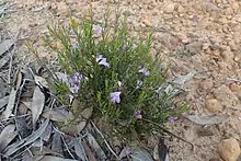 Hemigenia teretiuscula is a species of flowering plant in the family Lamiaceae and is endemic to the southwest of Western Australia. It is an upright, glabrous shrub that typically grows to a height of 10–80 cm (3.9–31.5 in), the leaves about 1 mm (0.039 in) in diameter, more or less tapering cylindrical and somewhat sharply pointed. Flowering usually occurs from August to December and the flowers are bluish-purple.[2][3]
