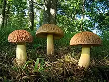 Hemileccinum is a genus of fungi in the family Boletaceae. It was erected in 2008 by Josef Šutara to contain two species united by a number of shared morphological features: H. depilatum and the type H. impolitum.[1] In 2014, Wu et al. found it to be distinct from other bolete genera in a molecular phylogenetic study and found it to be most closely related to Corneroboletus.[2] In 2015, H. subglabripes was transferred to Hemileccinum from Boletus based on DNA evidence,[3] while subsequent studies further confirmed the monophyly of the genus.[4]