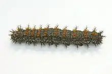 Defense mechanisms refer to ways in which an organism protects itself from dangers caused by enemies. Various lepidopteran larvae are known to have urticating spines or stinging hairs that contain venoms. Not all chemical components of the venom have been identified but it is currently known that histamine or histamine-like substances are parts of the venom.[13] These urticating spines and hairs that serve as protectors for these larvae could have evolutionarily developed as those free of such spines and hairs were easily preyed on.[14] Even if the spines do not contain venoms, they still serve to protect larvae as physical barriers from small invertebrate predators. Painful stings and swellings are noted results that are inflicted by Hemileuca lucina's spines.[11] Other than the spines or hairs, aposematic larvae often use regurgitation as an alternative deterrent method. Acquisition of multiple defense mechanisms are especially beneficial as it not only maximizes protection but it also allows matching a certain type of defense to specific predators/parasites.[2]