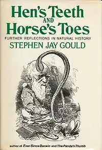 Hen's Teeth and Horse's Toes (1983) is Stephen Jay Gould's third volume of collected essays reprinted from his monthly columns for Natural History magazine titled "This View of Life". Three essays appeared elsewhere. "Evolution as Fact and Theory" first appeared in Discover magazine in May 1981; "Phyletic size decrease in Hershey bars" appeared in C. J. Rubins's Junk Food, 1980; and his "Reply to Critics", was written specifically for this volume as a commentary upon criticism of essay 16, "The Piltdown Conspiracy".