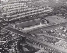 One year later in 1935 a stadium had been constructed on spare land between the River Brent and the relatively new North Circular Road directly east of the main London, Midland and Scottish railway line.[2]