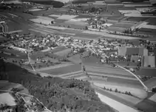 Hendschiken is first mentioned in 1160 as Hentschikon.[3] During the Middle Ages, the major landowners in Hendschiken included Muri Abbey, Säckingen Abbey and St. Urban Abbey as well as the Counts of Lenzburg and Habsburg. In the 14th century most of the land went to the Habsburg owned Königsfelden Abbey. The right to administer low justice was acquired between 1264-1273 by the Lords of Hallwyl, who held it until 1798. In 1415 the village came under the control of Bern and became part of the Lenzburg district (German: Oberamt Lenzburg). After it became a village in the 15th century, the farmers were allowed to freely choose their Twingherren from among any member of the Hallwyl family. With the Act of Mediation in 1803, Hendschiken joined the newly created Canton of Aargau and became part of the Lenzburg district.