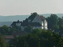 The Henfenfeld Castle, also called Pfinzing Castle, is a Höhenburg in Henfenfeld in the Landkreis Nürnberger Land, Germany, which was built around 1200 in the Late Middle Ages Seat of various Reichsministerialer, until it came into the possession of the Pfinzings von Henfenfeld in 1530. The buildings of the well-preserved estate, which has been privately owned again since 1983, have essentially retained their 16th-century appearance, while the landscaped garden is a nationally significant example of early 19th-century horticultural art. Burg Henfenfeld is not to be confused with the Pfinzing Castle in Feucht.