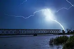![]() Henichesk Bridge over the Azov Sea during a storm | |