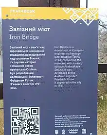 - ↑ "В сети раскрыли загадки удивительного железного моста в Геническе" (in Russian). nk-online.com.ua. Archived from the original on 2021-11-03. Retrieved 2021-11-04.