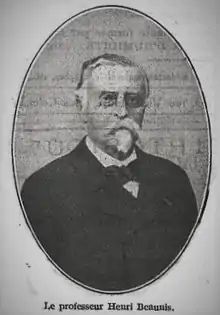 He studied in Rouen until he began his medical specialisation in Paris.[1] He obtained his medical doctoral degree in Montpellier in 1856. His thesis was focused on habits and was published under the name of De l'habitude en général. He presented his vision of habits and pleaded for people to see habits as ways of improving ourselves, and not as repetitive acts that allows us to please ourselves in rest and happiness.[2] His father was not an enthusiast for the arts and encouraged him to pursue the path of medicine. Henri-Étienne Beaunis chose medicine and enlisted himself in the French army. He served in Algeria many times and came back to France with the title of médecin-major de deuxième classe in 1860.[1] His work Anatomie générale et physiologie du système lymphatique was presented as a thesis for his aggrégation de médecine in anatomical and physiological sciences. This was an obligatory step in France to become a professor. He then became professor at the Faculty of Medicine of the University of Strasbourg.[1]
