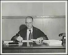 After the war, Bernard returned to his duties as a colonial magistrate.[1] He was later appointed as the French judge at the International Military Tribunal for the Far East ("Tokyo Trial") in Tokyo by the Minister of the Overseas, following the withdrawal of fellow magistrate Henri Heimburger. Bernard spoke little English, and was assisted by Jacques Gouëlou, an English teacher from Lycée Michelet of Paris.[2] He issued a dissenting opinion at the Tribunal, criticizing the trial proceedings as partial, and with a selective prosecution that excluded Emperor Hirohito, whom he considered the "principal perpetrator" of the war.[1]