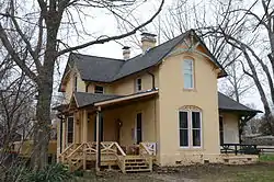 The Henry-Thompson House is a historic house at 302 SE Second Street in Bentonville, Arkansas. It is a two-story brick building, with Italianate styling that includes trusswork in the front-facing gable, a scrollwork balustrade on the main porch, and scrolled brackets on a hood over a secondary entrance. Built in 1890, this is a good representative of late Italianate style brick homes that were built in significant numbers in Bentonville between 1870 and 1895.[2]