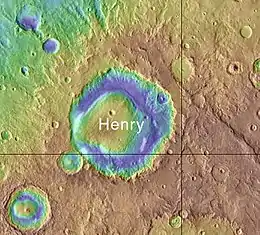 Henry is a large crater in the Arabia quadrangle of Mars. It is 171 kilometres (106 mi) in diameter and was named after the brothers Paul Henry and Prosper Henry, both of whom were French telescope makers and astronomers.[1]