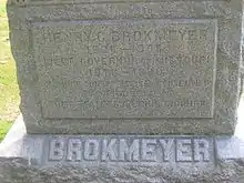 - ↑ He seems to have used both "Brokmeyer" and "Brockmeyer" at various times in his life.