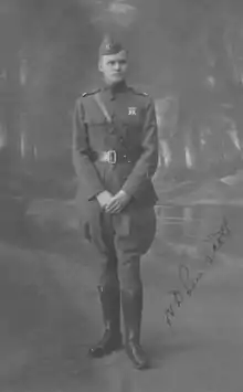 Henry D. Linscott was born on September 3, 1894, in the town of Milford, Kansas, the son of local postmaster Melvin C. Linscott and his wife Mary Ellen. His father served in the 74th Pennsylvania Infantry of the Union Army during the American Civil War and was discharged with the rank of captain. Following graduation from high school, Linscott enrolled in Kansas State Agricultural College from which he graduated in summer 1916 with a Bachelor of Science degree in electrical engineering. During his university years, Linscott was a member of the Army Reserve Officers' Training Corps, in which he was commissioned a second lieutenant, in April 1914.