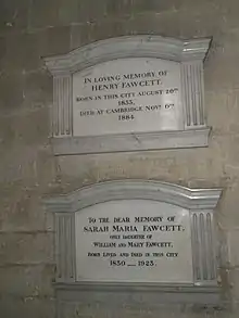 - ↑ "Fawcett, Henry (FWCT852H)". A Cambridge Alumni Database. University of Cambridge.
