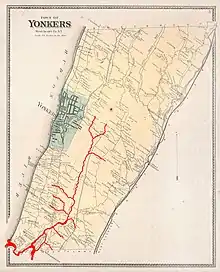 Map of Riverdale and Yonkers. Atherton's properties are featured