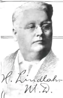 Lindlahr was born March 1, 1862, in Cologne, Kingdom of Prussia.[1] He devoted himself to healing after being helped by Father Sebastian Kneipp (1821–1897),[2][3] in Europe. Lindlahr was also influenced by the ideas of Bernarr Macfadden.[4] He graduated from the National Medical University in Illinois,US.[5] In 1902, he opened his practice in Chicago. In 1914, he founded the Lindlahr Sanitarium, in Elmhurst, Illinois.[6][7]