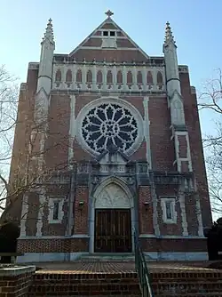 Henry Mansfield Cannon Memorial Chapel, also known as Cannon Chapel, is an American historic chapel located on the University of Richmond campus in Richmond, Virginia. It was designed by architect Charles M. Robinson and built in 1929 in the Late Gothic Revival style. It is constructed of brick, stone, and concrete and has a rectangular plan with a telescoping projection at the rear. During the mid-1980s, new stained glass windows were installed as part of a renovation project.[3]