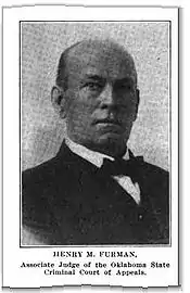 Henry Marshall Furman was the first Presiding Judge of the Oklahoma Criminal Court of Appeals, now the Oklahoma Court of Criminal Appeals, and served as Presiding Judge from 1909 to 1916. He died after a lengthy illness, from Bright's Disease, on April 10, 1916.[1]