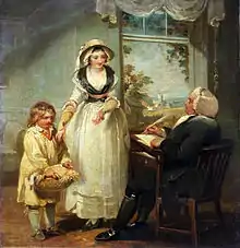 Henry Singleton was born in London, England, into an artistic family. He was not yet two years old when his father died, so he was raised by his uncle William Singleton (d. 1793), who had studied under the tutelage of Ozias Humphry and painted portraits and miniatures. Another uncle, Joseph Singleton, exhibited at the Royal Academy between 1773 and 1788. Henry’s sisters Maria and Sarah (later Macklarinan) were miniaturists who exhibited at the Royal Academy from 1808 to 1820 and from 1787 to 1806 respectively.