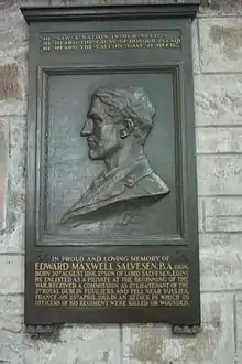 - Memorial plaque of the late 2nd Lt. Edward Maxwell Salvesen (nephew of Christian Salvesen) (1919) in north aisle of St. Giles' Cathedral
