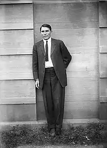 He was imprisoned again in 1915 in Arizona, wrote his autobiography, Thrilling Events, Life of Henry Starr and, released on parole, even portrayed himself in the silent film, A Debtor to the Law (1919).[1] While attempting to rob a bank in Harrison, Arkansas, on February 18, 1921, he was shot by the bank president W. J. Myers with a .38 caliber rifle, and later died of his wounds.[6] Starr is buried at Dewey cemetery in Dewey, Oklahoma.[8]