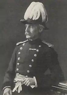 He was promoted to major general in 1895 and appointed Major General commanding the Brigade of Guards and General Officer Commanding the Home District in 1897, serving until 1903.[2] During preparations for the coronation of King Edward VII in 1902, Trotter acted as Chief Staff Officer to the Duke of Connaught, who was in supreme command of the troops taking part in all military ceremonies connected with the coronation.[3] He was advanced to a Knight Grand Cross of the Royal Victorian Order (GCVO) for his service later the same year,[4] and was invested with the insignia by the King at Buckingham Palace on 18 December 1902.[5]
