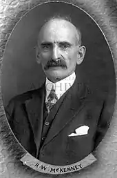 McKenney died on March 11, 1921, at a hospital in Edmonton, after a long illness. He was survived by his widow and seven children (three sons and four daughters).[13] The Edmonton Bulletin lamented his death, describing him as a "genuine scholar" and "courteous and gallant gentleman", stating that "his death removes from the rapidly disappearing group of old timers, who labored so lovingly the Edmonton ... might prosper".[13] The 1912 publication, History of the province of Alberta noted on McKenney: "The name of Henry William McKenney has been inscribed high on the roll of honored pioneers of the great Northwest and as one of the most eminent citizens of Edmonton, in the development of which he has taken such a prominent part".[3]