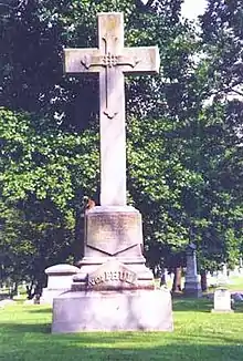 Two years later, at 3 p.m. on September 8, 1874, Henry von Phul died at his residence, 1516 Olive Street, St. Louis.[1] He had been prostrated for some time, and his death had been expected for several days.[1] He left forty-three grandchildren and four great-grandchildren.[1] The Union Merchants' Exchange draped their hall of exchange in mourning for thirty days, and some of Von Phul's friends presented a full-length portrait of the "old and honored merchant" to be hung there.[2]