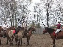 The Henson has great endurance, and is both handy and fast.[3] It can participate in polocrosse and is used for hunting. Driving, where a team of four Henson horses earned a bronze medal in the Championship of France, horse-ball, in which the women's team of Marquenterre was national champion of France in 2002,[12]: 58 endurance and Le TREC, where the Henson is seen at the national level, are among its preferred disciplines.[3][2]: 68, 69 Thanks to its coat colour, it is striking in the field of traditional driving.[2]: 69