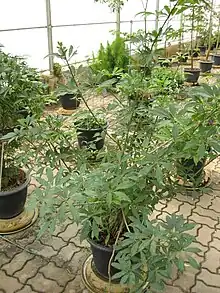 - ↑ Li, R.; Qin, h.; Botanic Gardens Conservation International (BGCI).; IUCN SSC Global Tree Specialist Group. (2019). "Heptapleurum leucanthum". IUCN Red List of Threatened Species. 2019: e.T191182A147631223. doi:10.2305/IUCN.UK.2019-2.RLTS.T191182A147631223.en. Retrieved 10 May 2023.