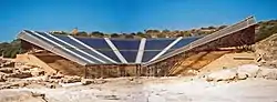 In the early 20th century, a mid-6th-early 5th century BC necropolis was discovered. A large-scale excavation by Professor Ernesto de Miro from 1950 uncovered late 4th–late 1st century BC dwellings and the late 4th century BC theatre.[4] The absence of Arretine ware at the site strongly suggests that the city was abandoned by the beginning of the 1st century AD.[31] Many cemeteries and tombs have been excavated in the nearby countryside and many of their grave goods are on display in the on-site museum.
