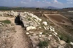 The urban area outside the wall was occupied in the III-VII c. AD by a late Roman villa,[28] and in the Byzantine period with the construction of a large basilica and a connected cemetery.[29]
